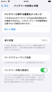 最大容量は100%と表示されますが、劣化状況が最大容量に反映されない可能性があります。